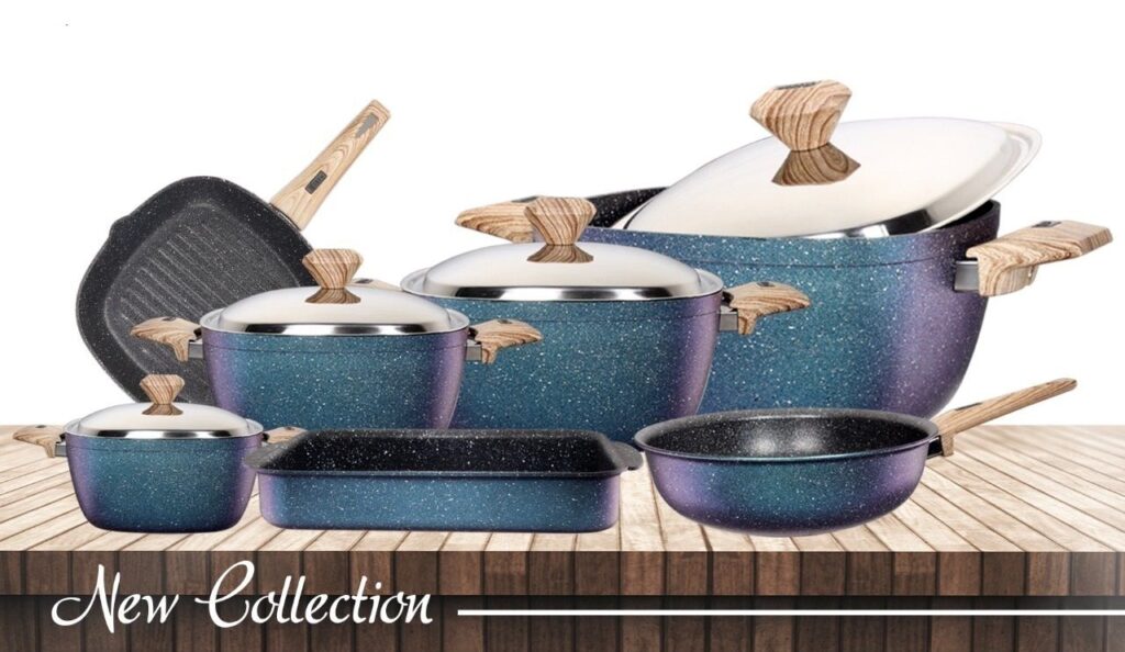 طقم حلة – الخامة : جرانيت – العدد : 12 قطعة – المكونات : 4 حلل + مقلاية + صنية فرن مدور + 2 ماسك سيلكون – الماركة : بادريق – سعودى المنشأ