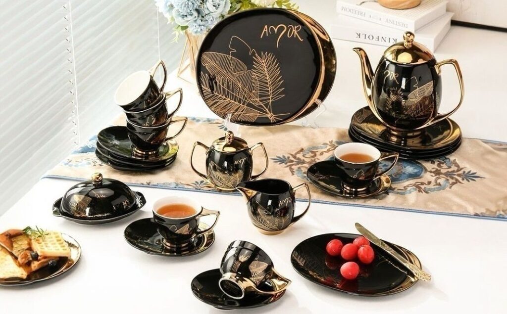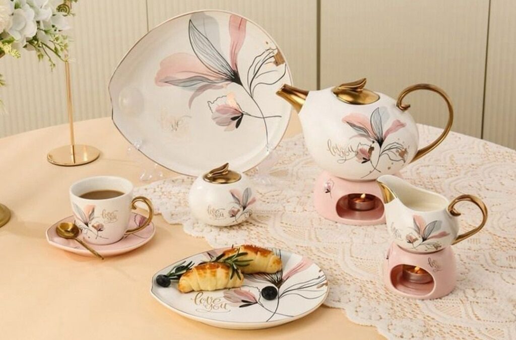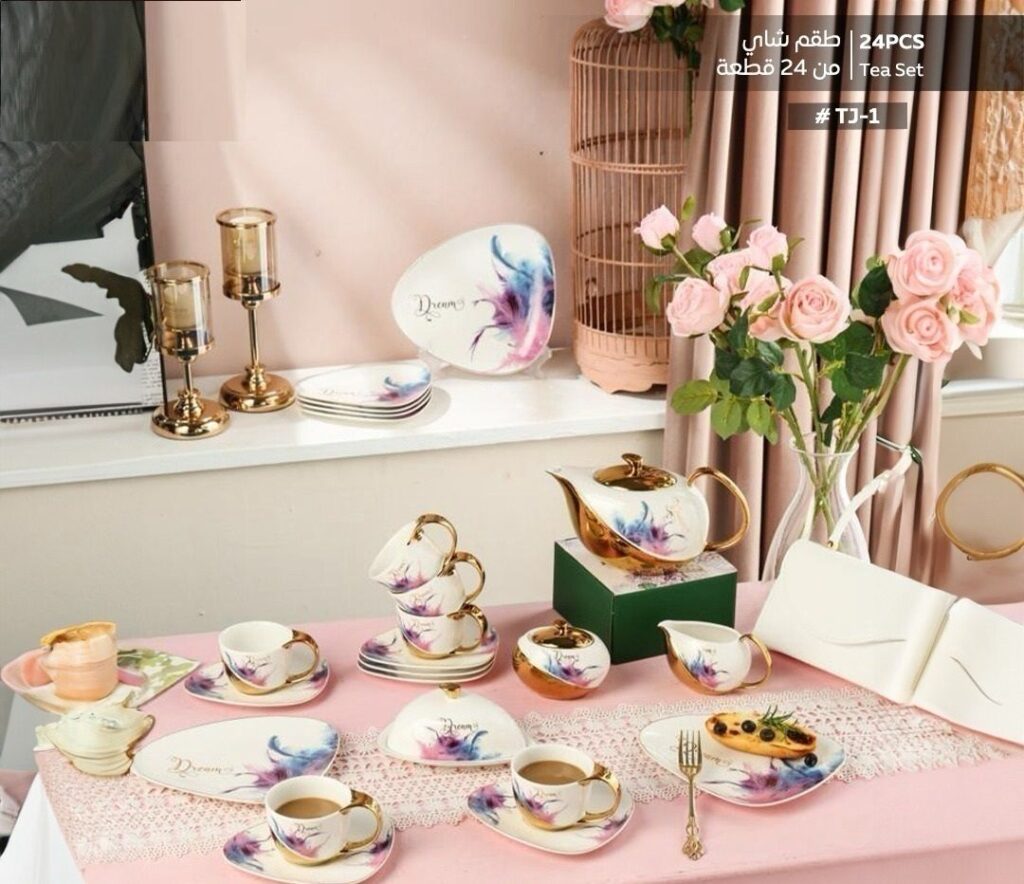 يشمل أطباق متعددة، بولات، شيالة، طبق تورتة، سيرفيس وطبق فواكه.